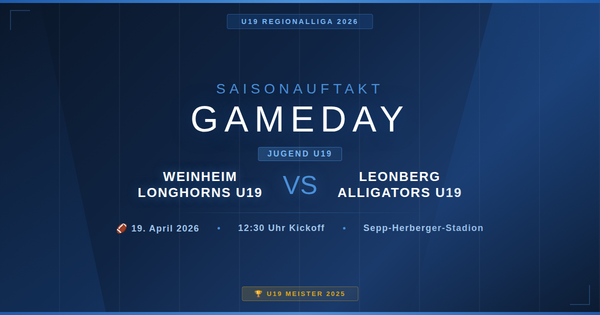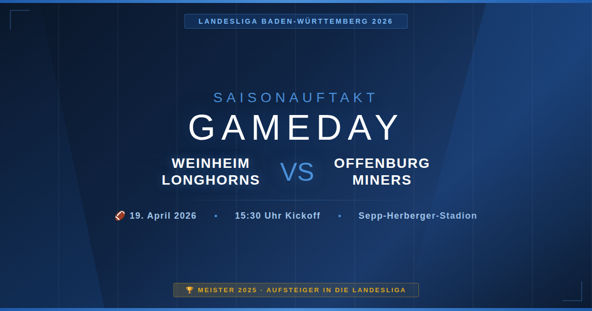 Es ist so weit – am Samstag, 19. April starten unsere Herren in die neue Saison! Und was für eine: Nach der unvergesslichen Meisterschaft 2025 mit einer Perfect Season spielen die Longhorns in der Landesliga Baden-Württemberg! 📈🏆 Was letztes Jahr noch wie ein Traum klang, ist jetzt Realität: Ein Team, das 2022 noch keinen einzigen Sieg auf dem Konto hatte, spielt jetzt eine Liga höher – gegen Gegner wie die Stuttgart Silver Arrows, die Black Forest Foxes, die Badener Greifs und Co. […]